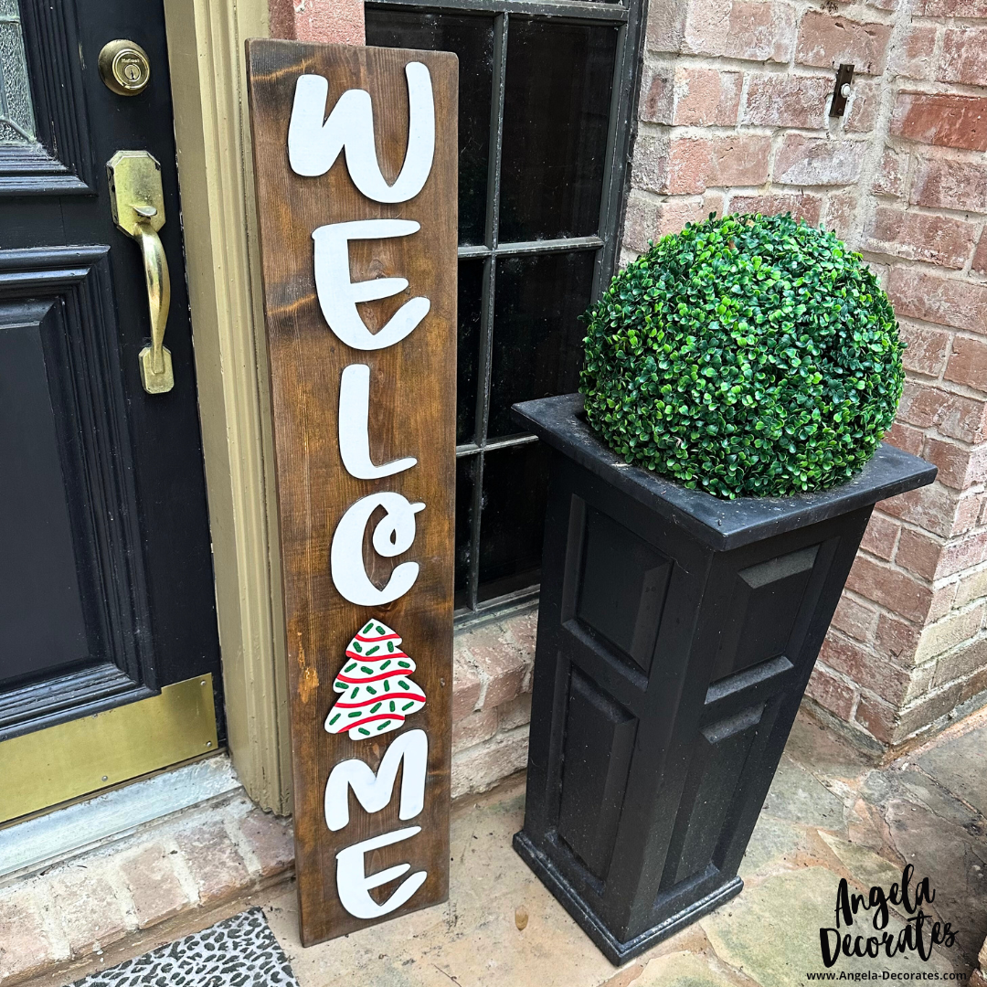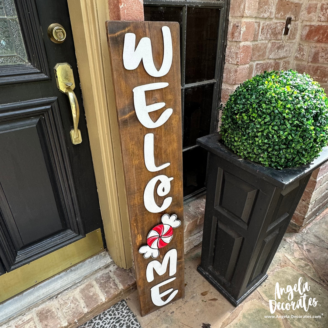 The Welcome Porch Leaner comes in two sizes--4 feet or 6 feet tall. Both are approximately 10 inches wide. The MINI Attachments are the perfect size for all the Angela Decorates Porch Leaners. Check out our full selection here!